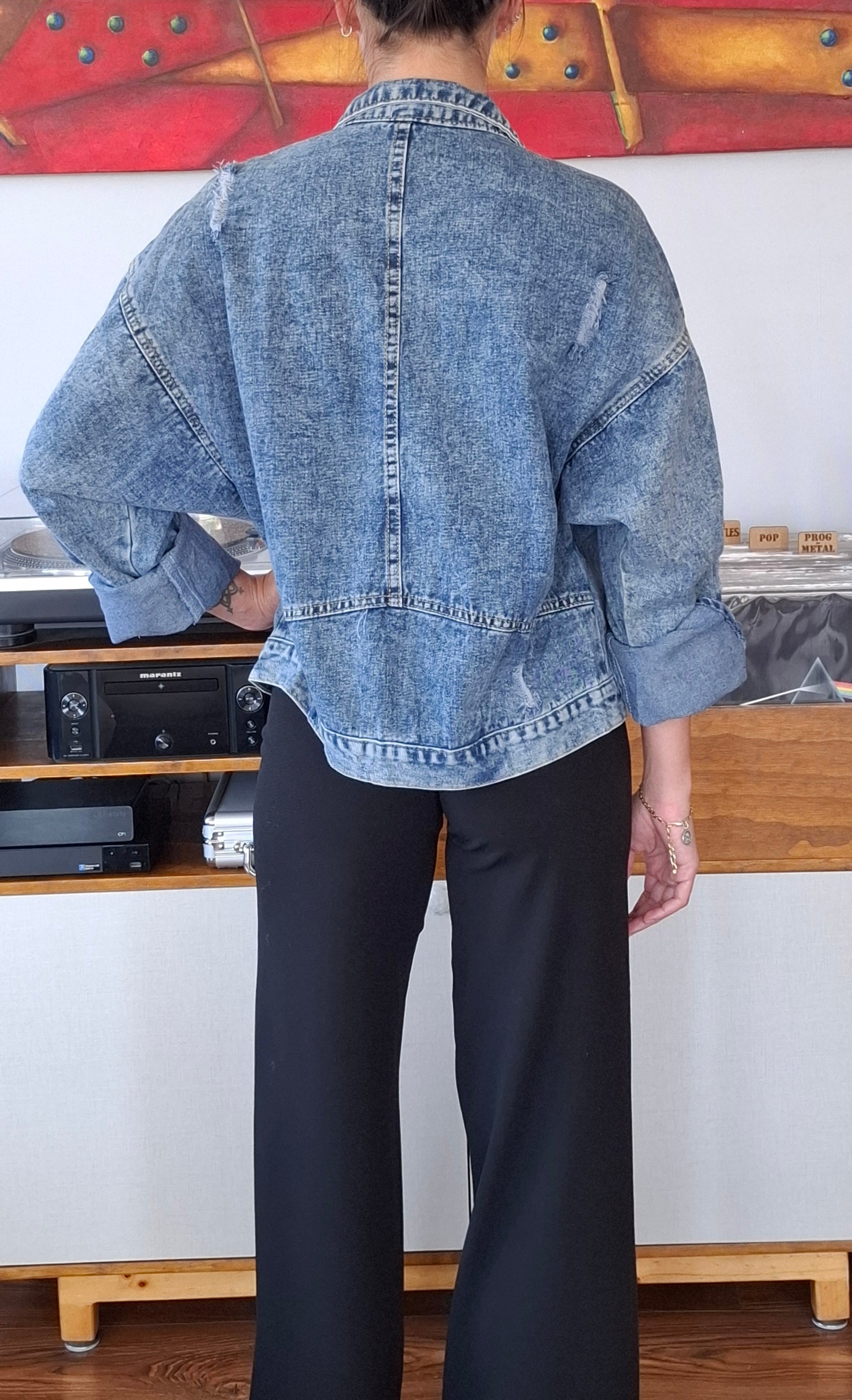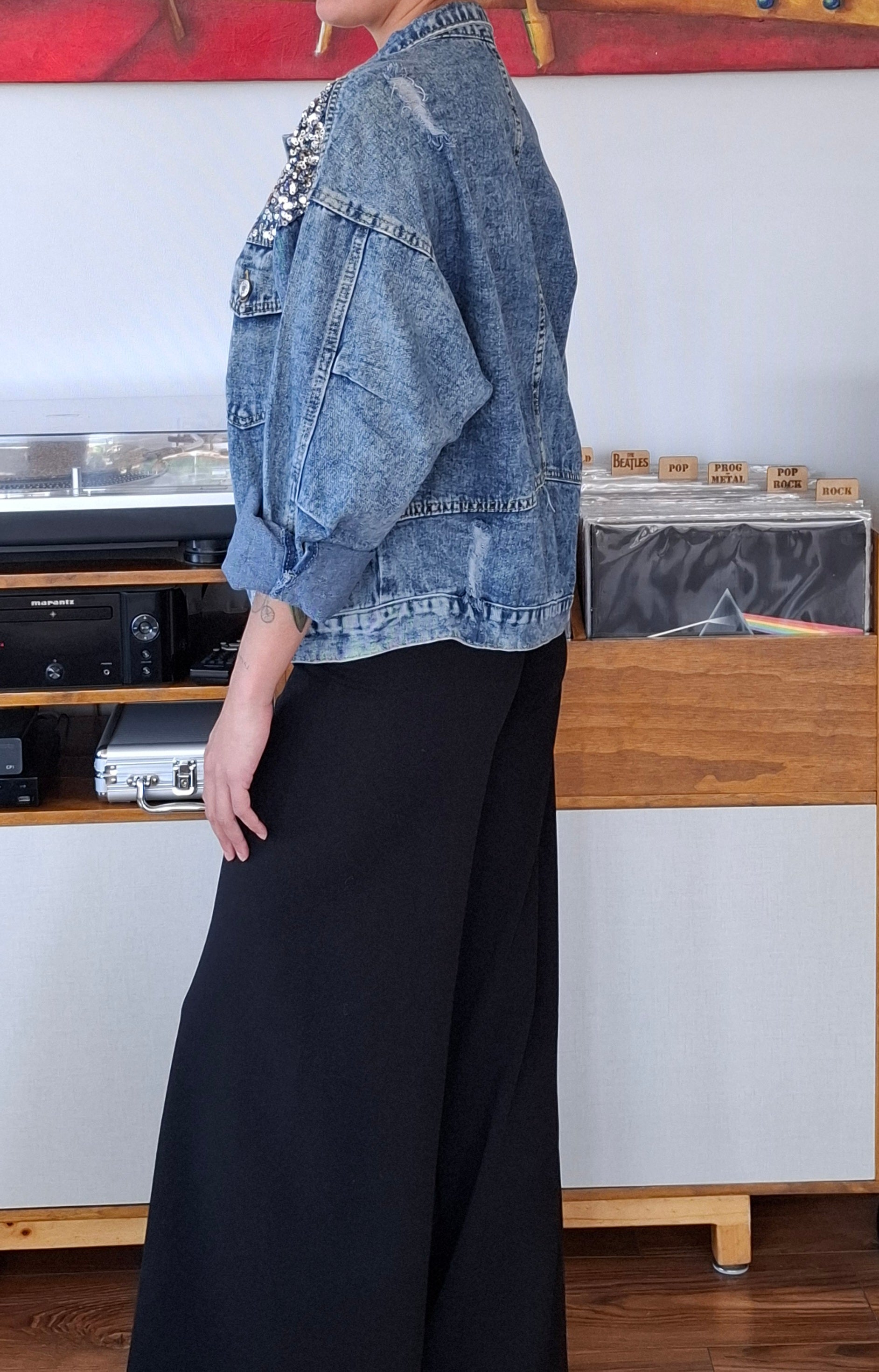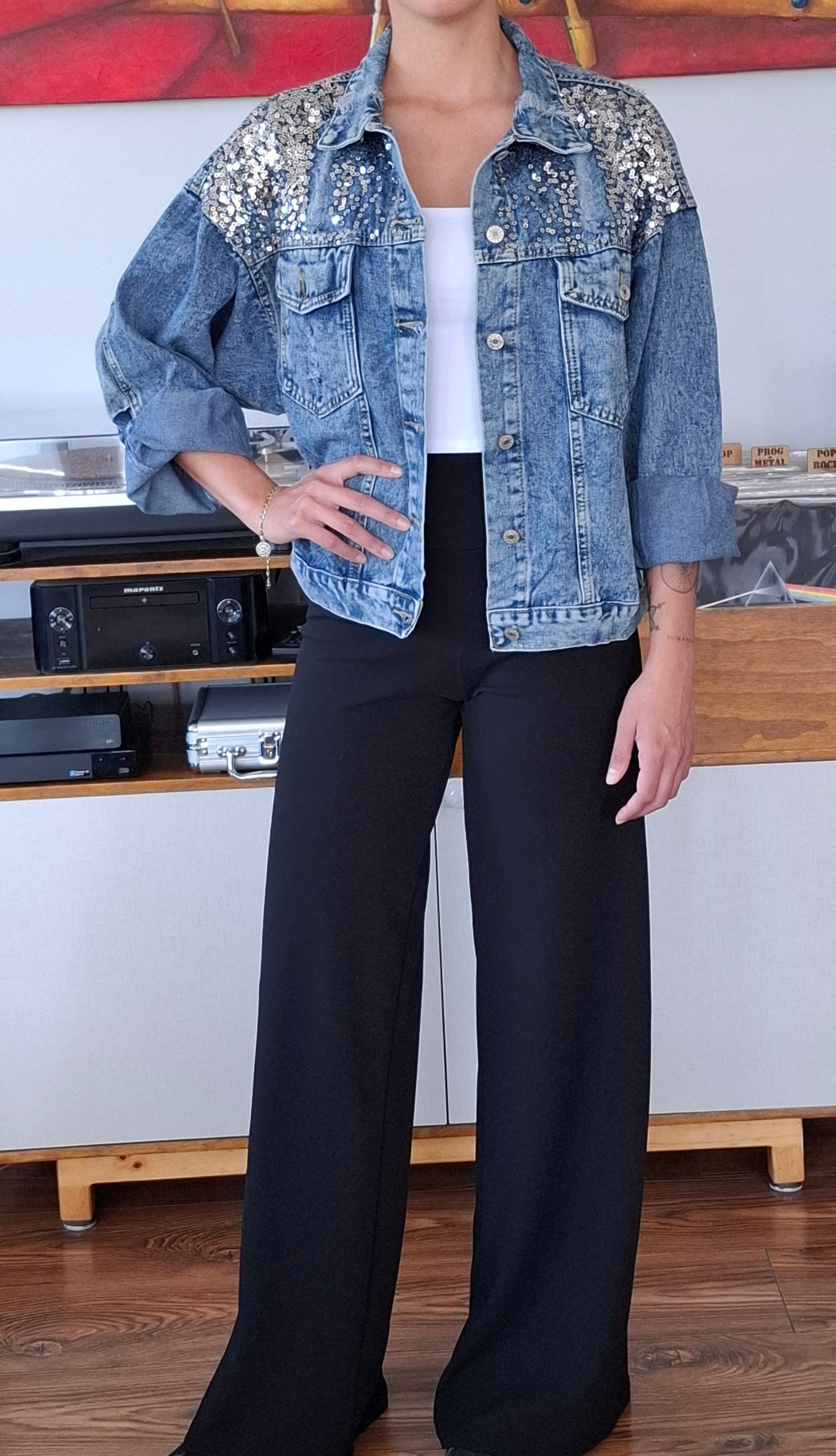 Chaqueta de Jeans Azul con lentejuelas plateadas , modelo Oversize. (no es elasticada)