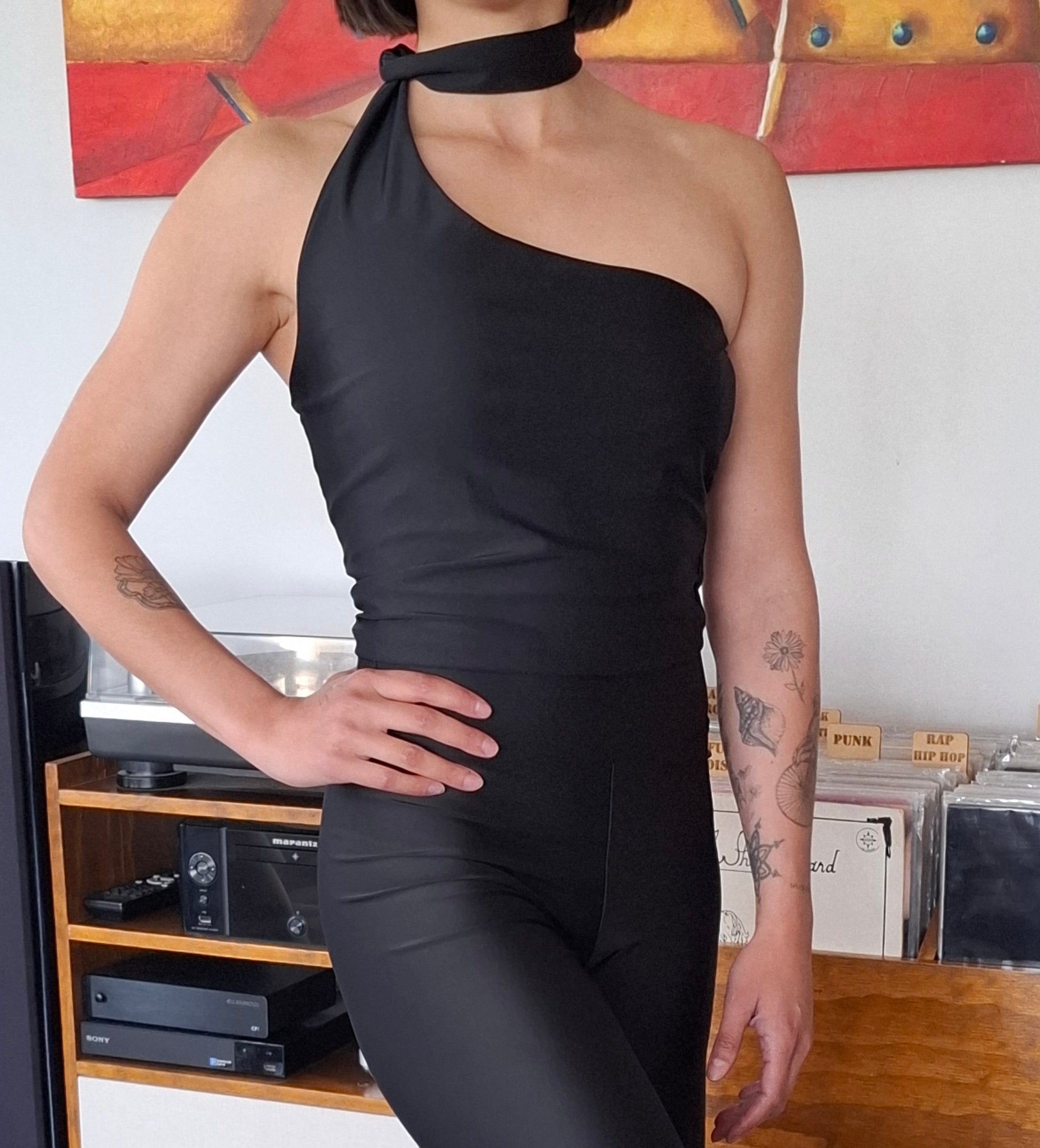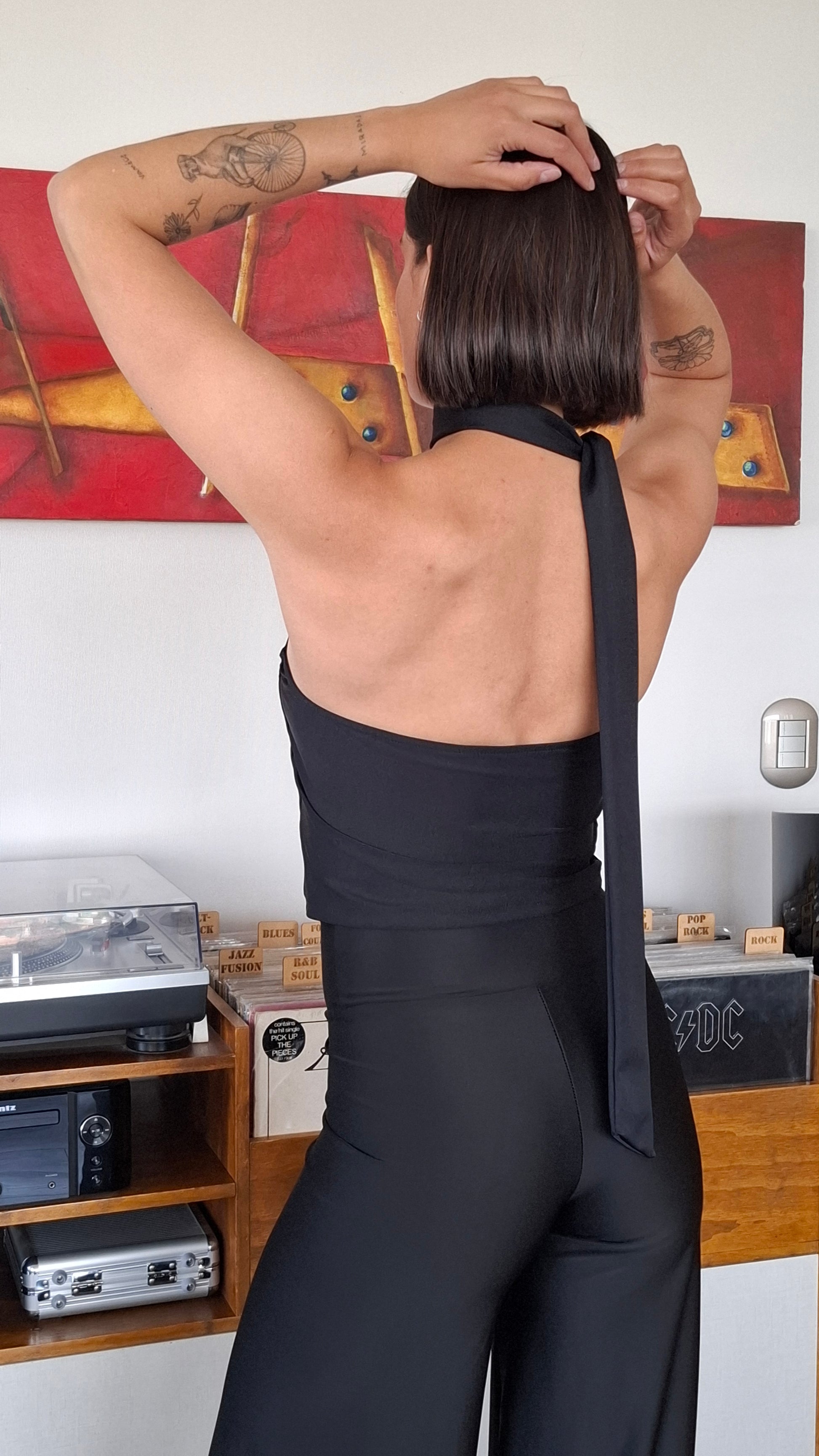 Crop top Rock confección Eni Villavicencio, detalle en lazo en el cuello .