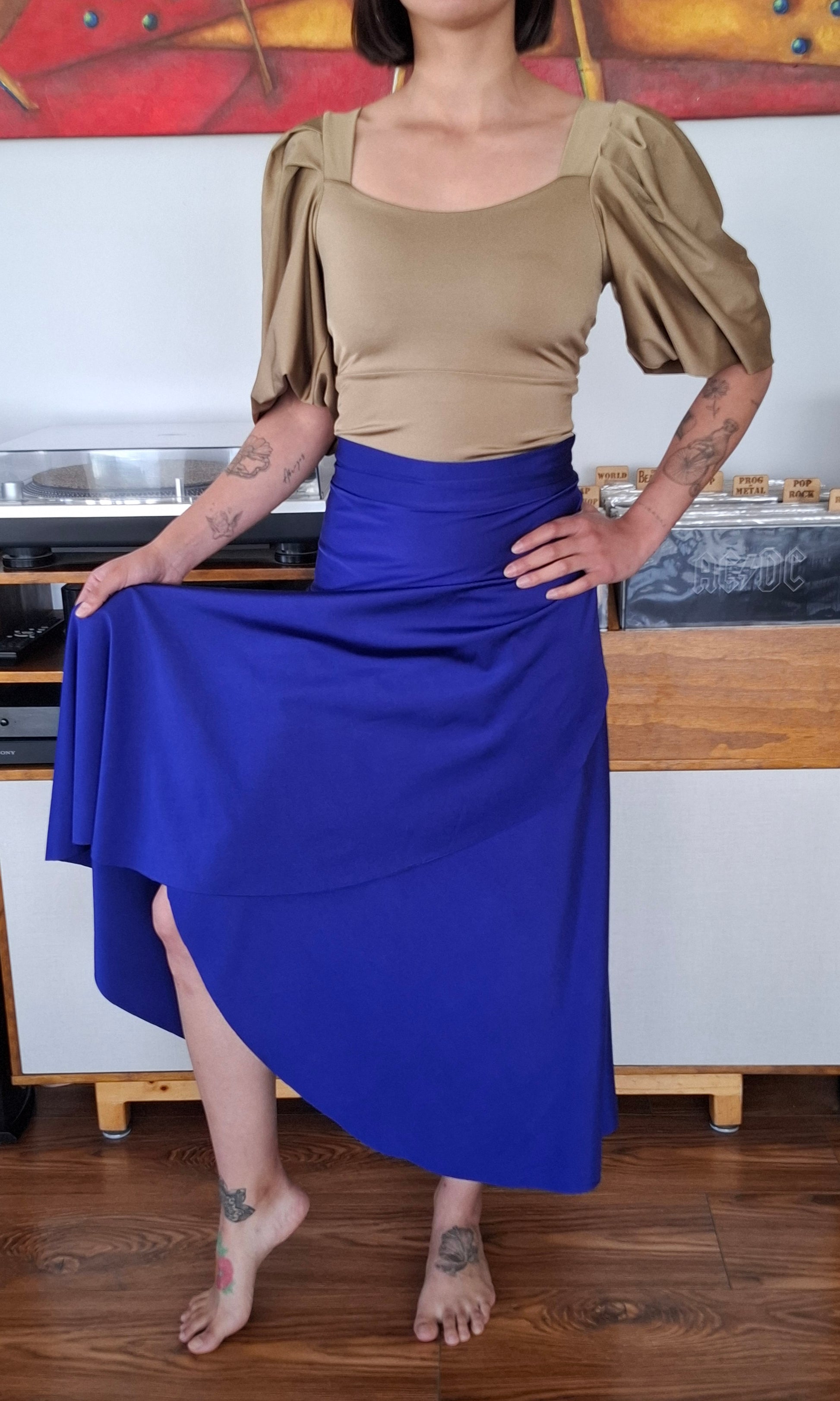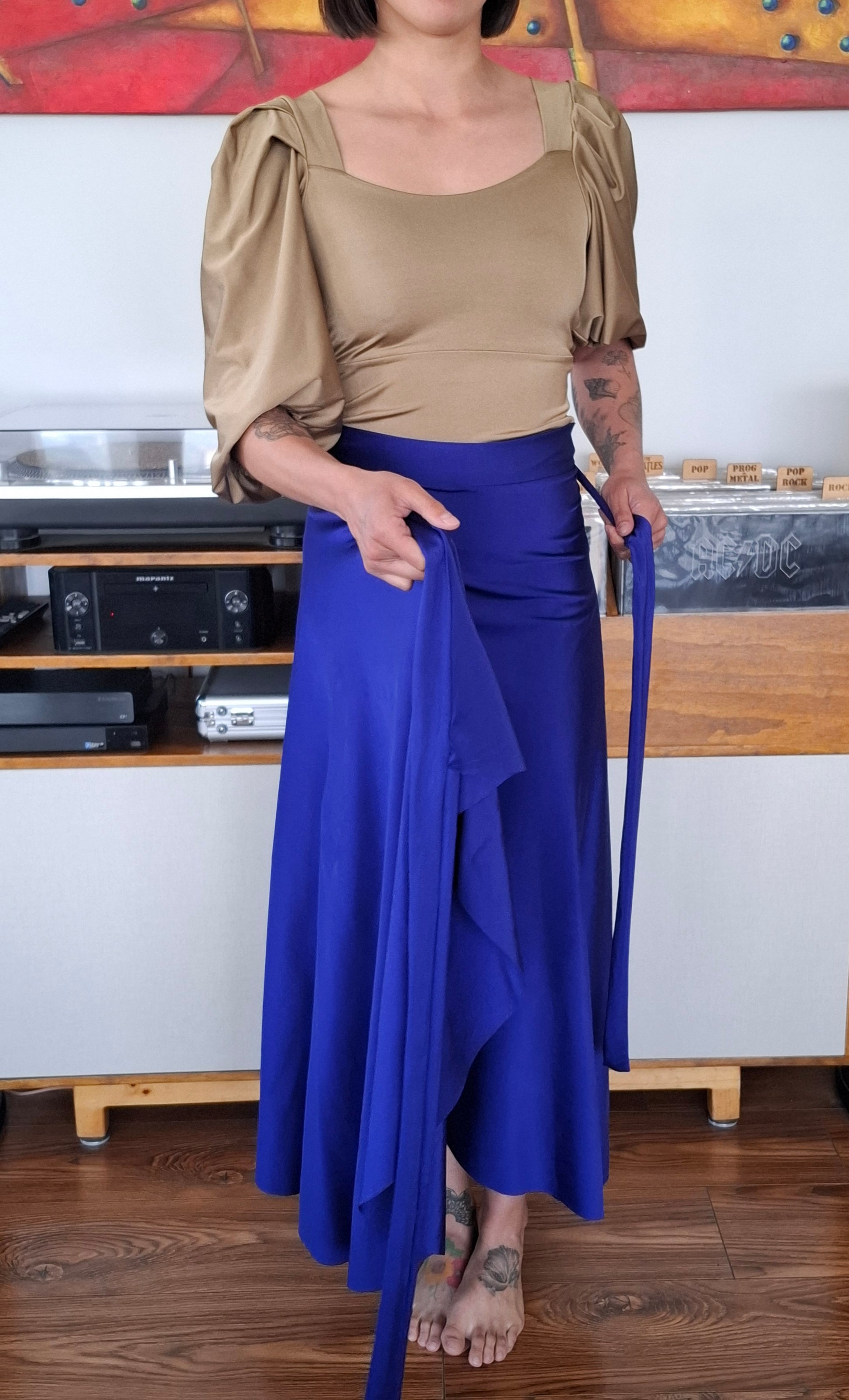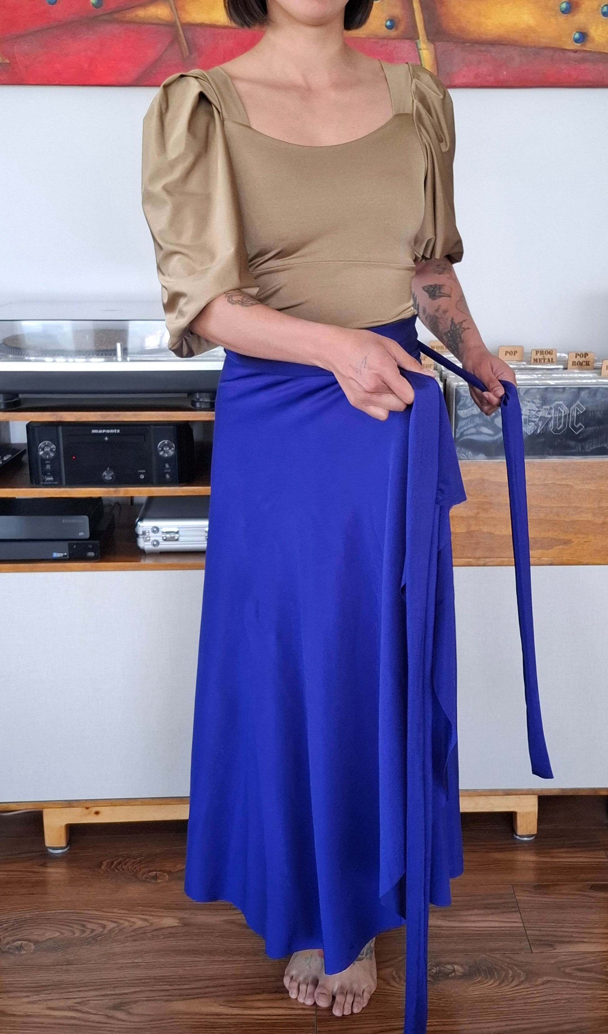 Falda envolvente Tili confección Eni Villavicencio es un nuevo modelo para esta colección Primavera - Verano 2026, su diseño tipo pareo se adecua a todo tipo de cuerpo donde puede ser usada perfectamente en el embarazo , cómodas y versátiles para cualquier ocasión.