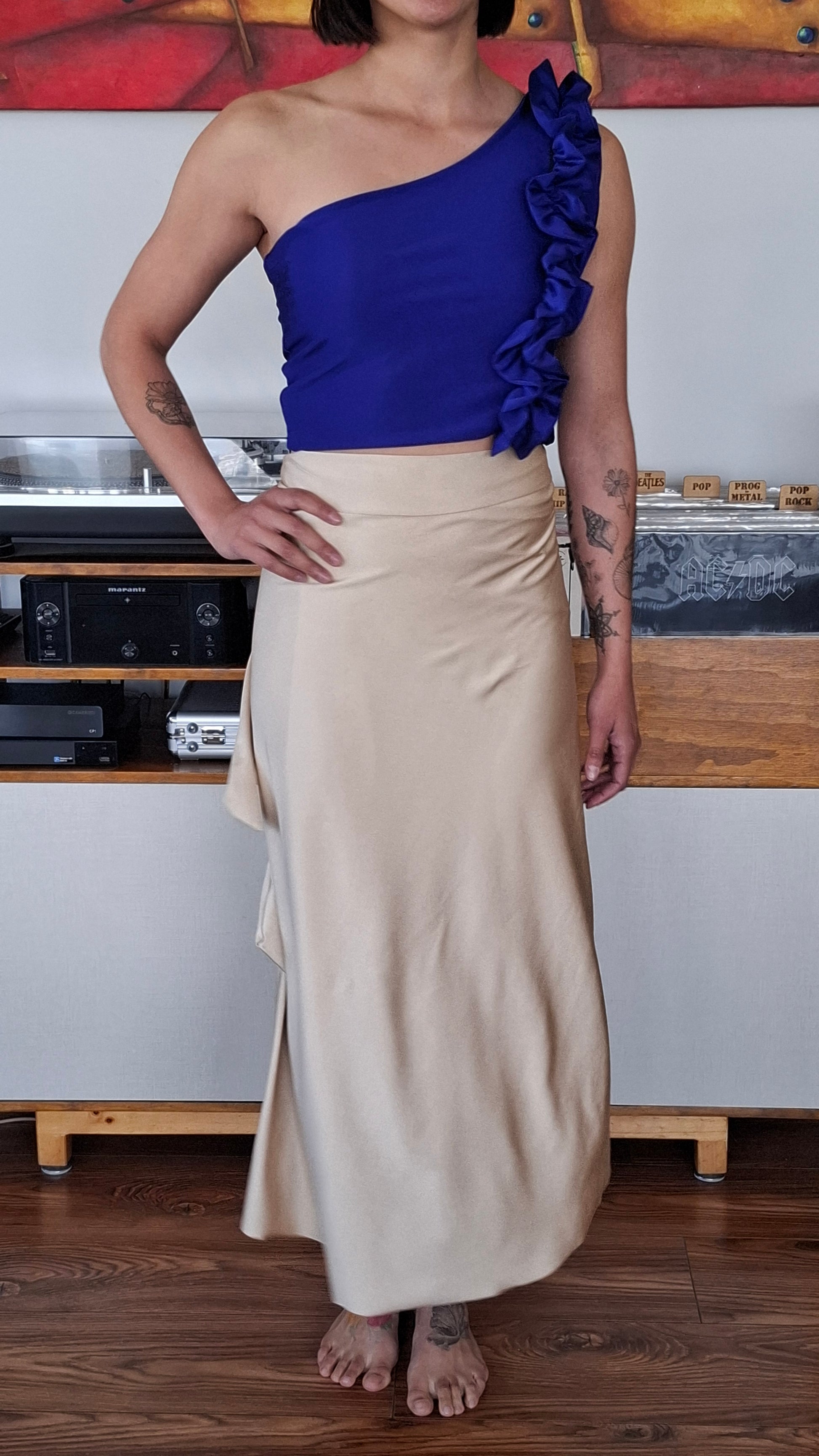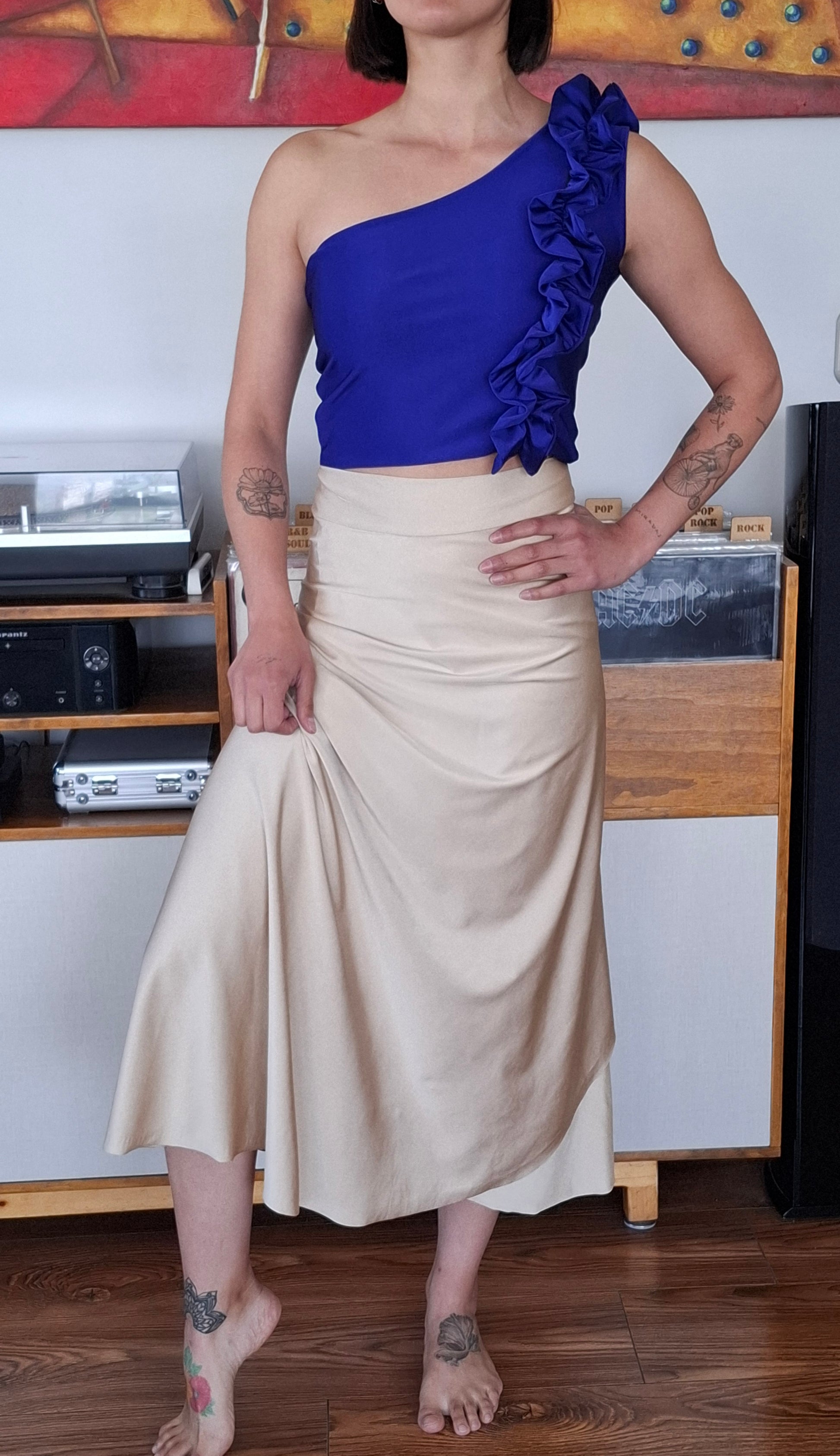 Falda envolvente Tili confección Eni Villavicencio es un nuevo modelo para esta colección Primavera - Verano 2026, su diseño tipo pareo se adecua a todo tipo de cuerpo donde puede ser usada perfectamente en el embarazo , cómodas y versátiles para cualquier ocasión.