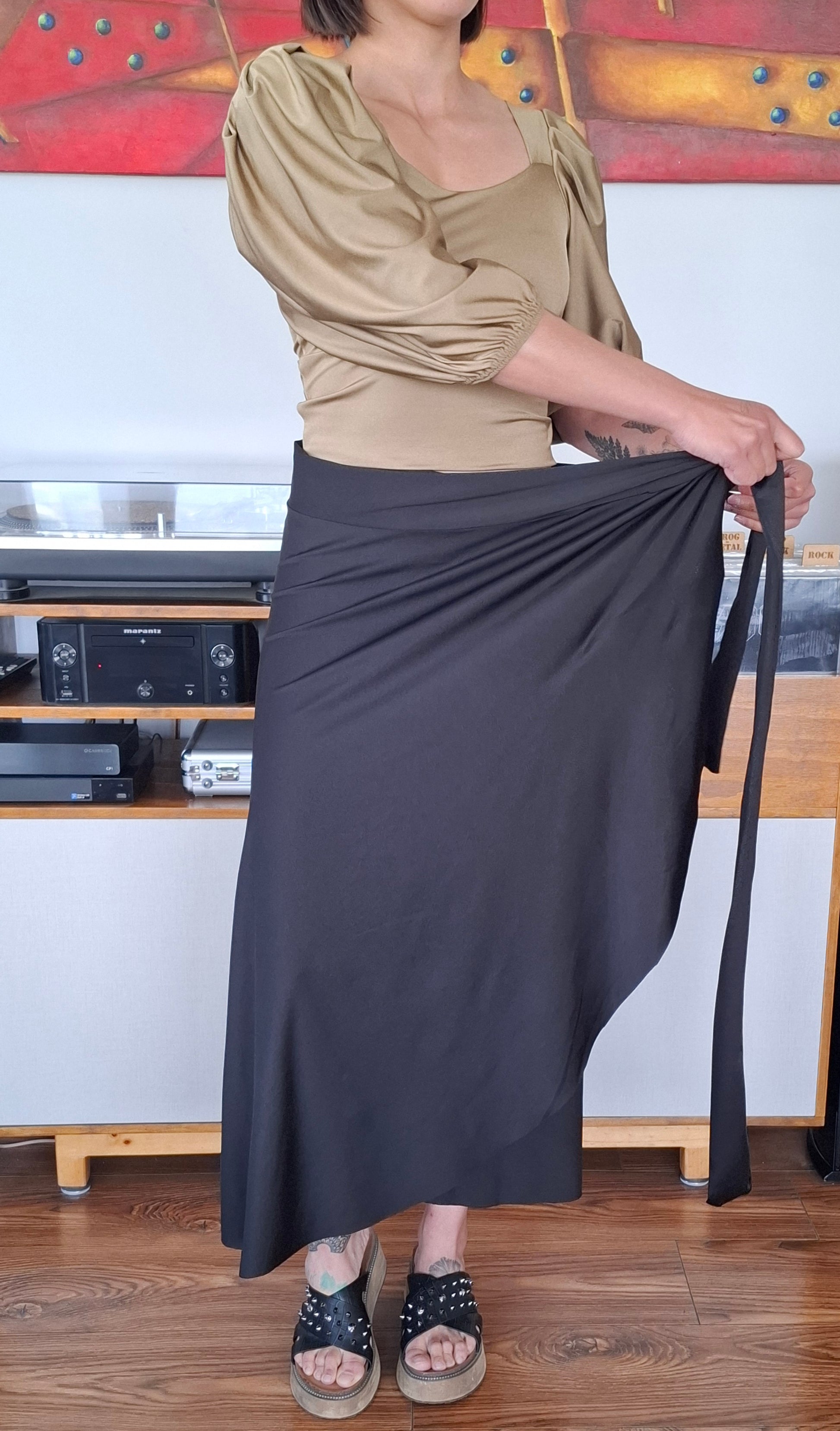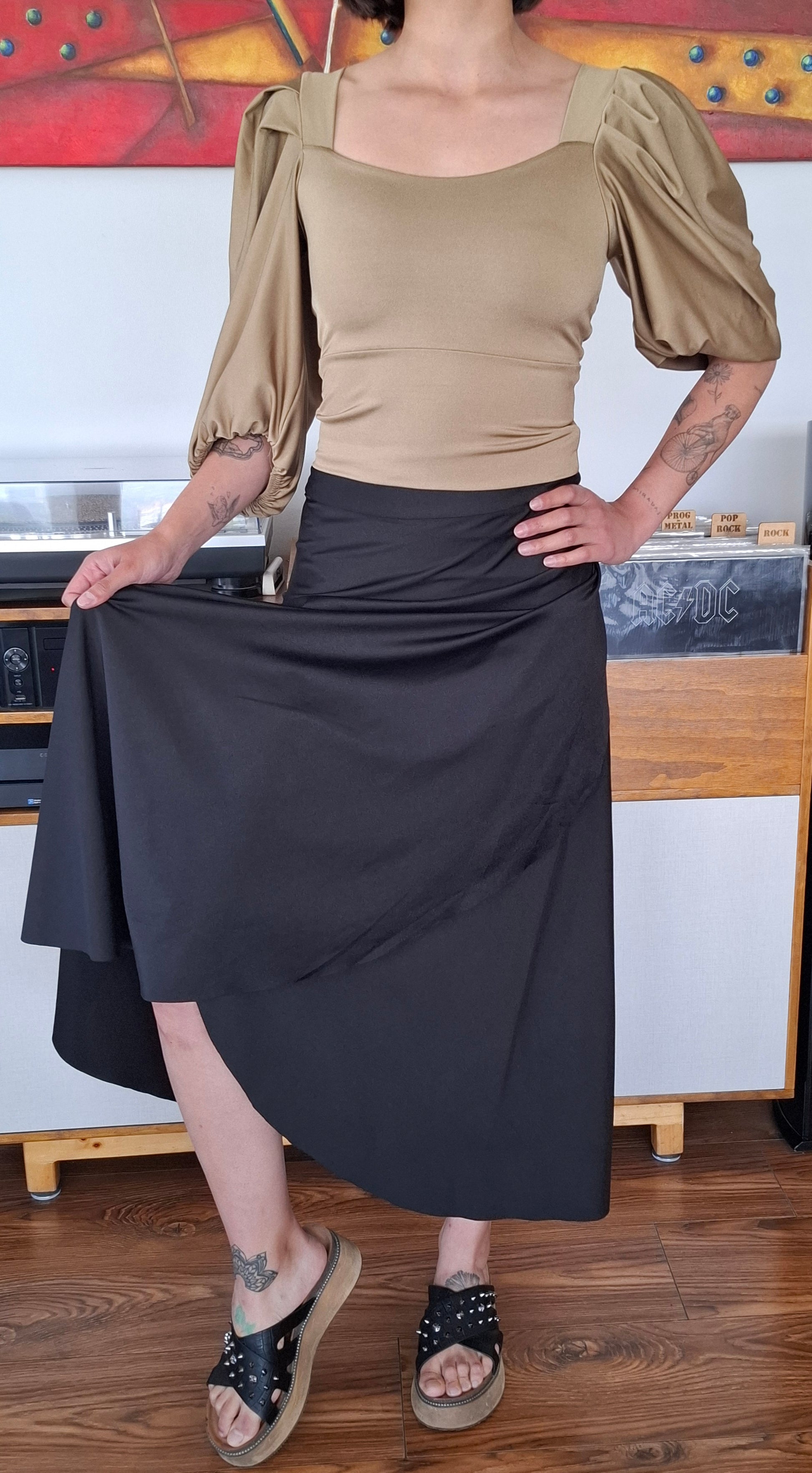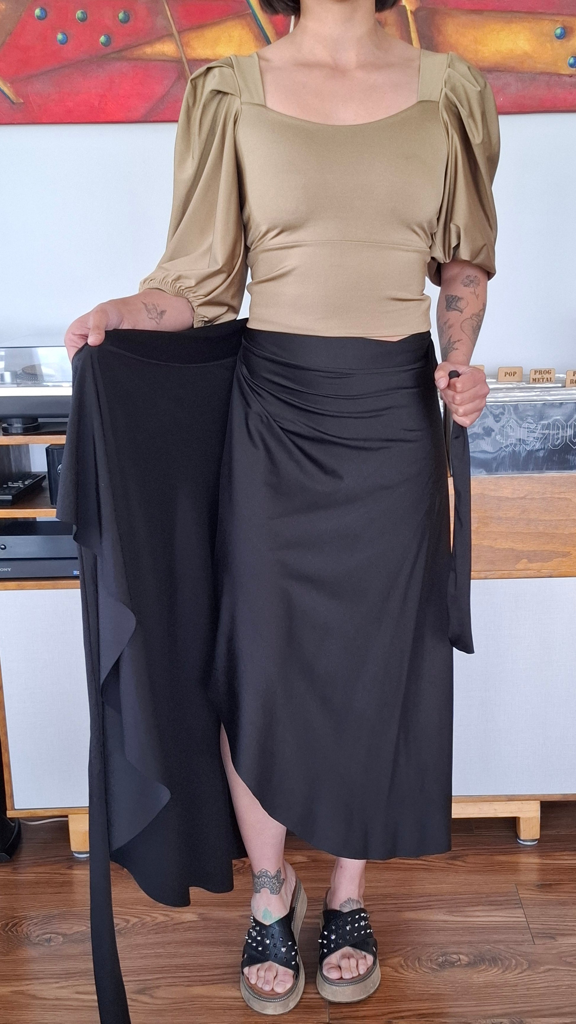 Falda envolvente Tili confección Eni Villavicencio es un nuevo modelo para esta colección Primavera - Verano 2026, su diseño tipo pareo se adecua a todo tipo de cuerpo donde puede ser usada perfectamente en el embarazo , cómodas y versátiles para cualquier ocasión.