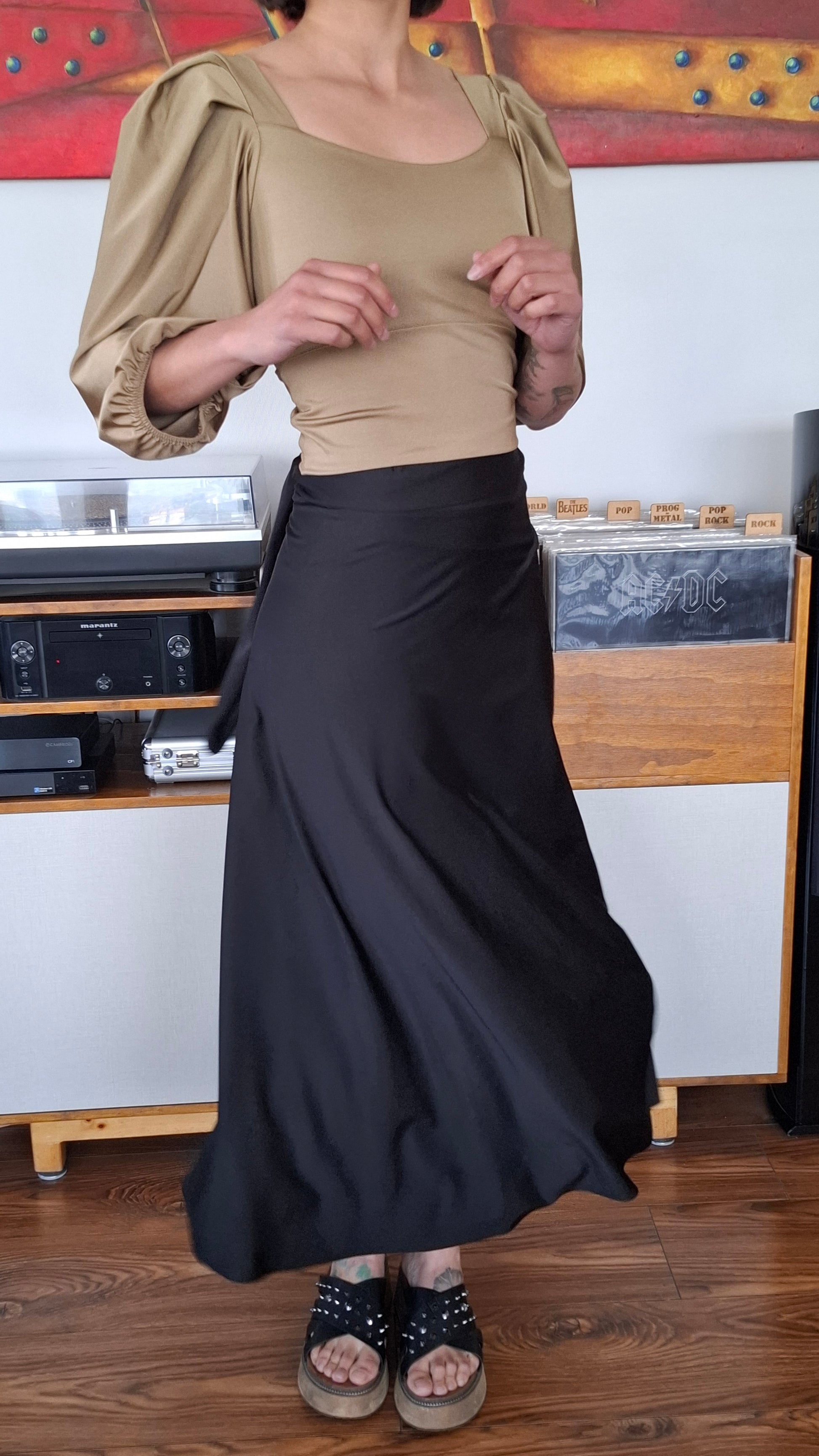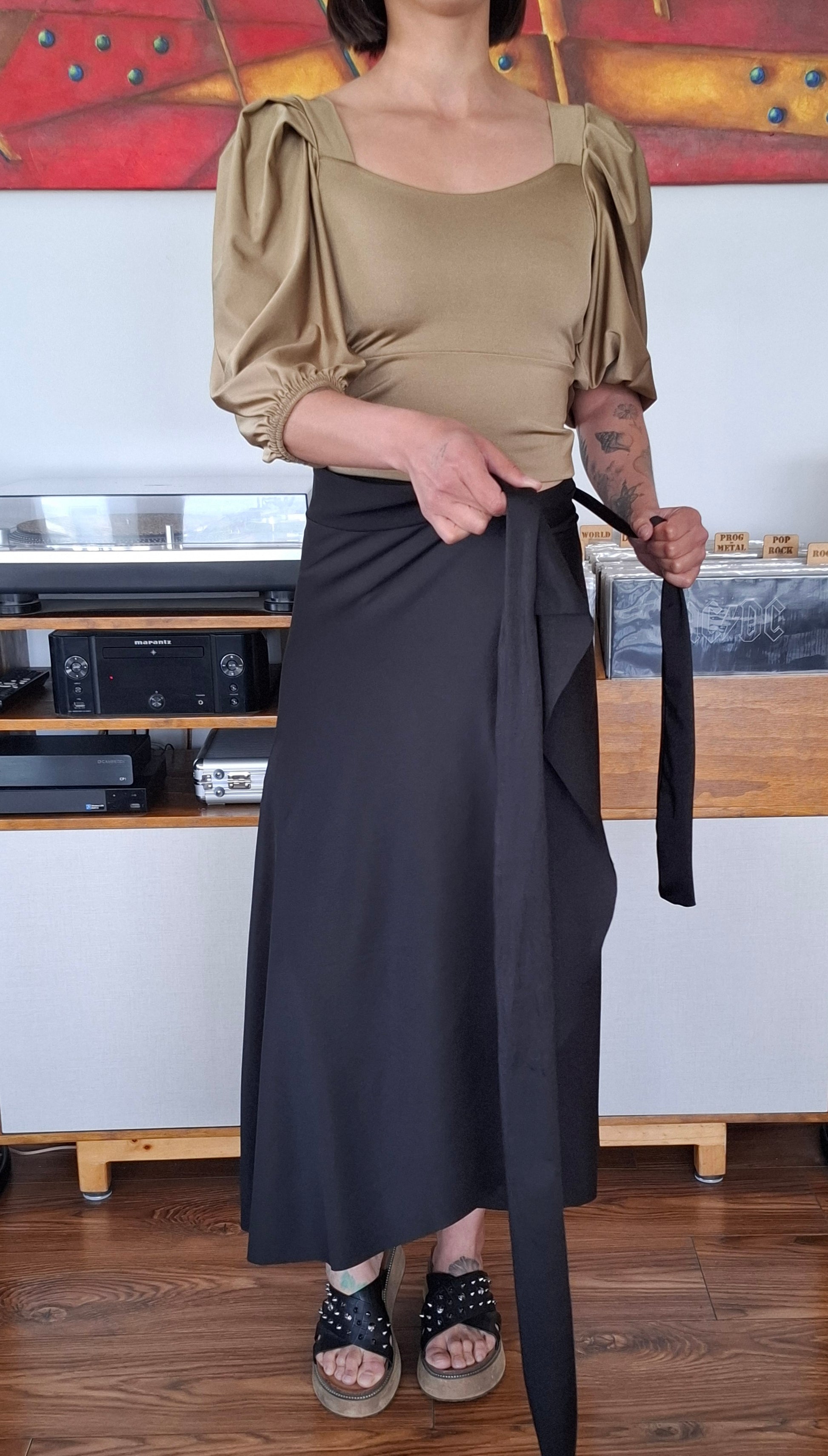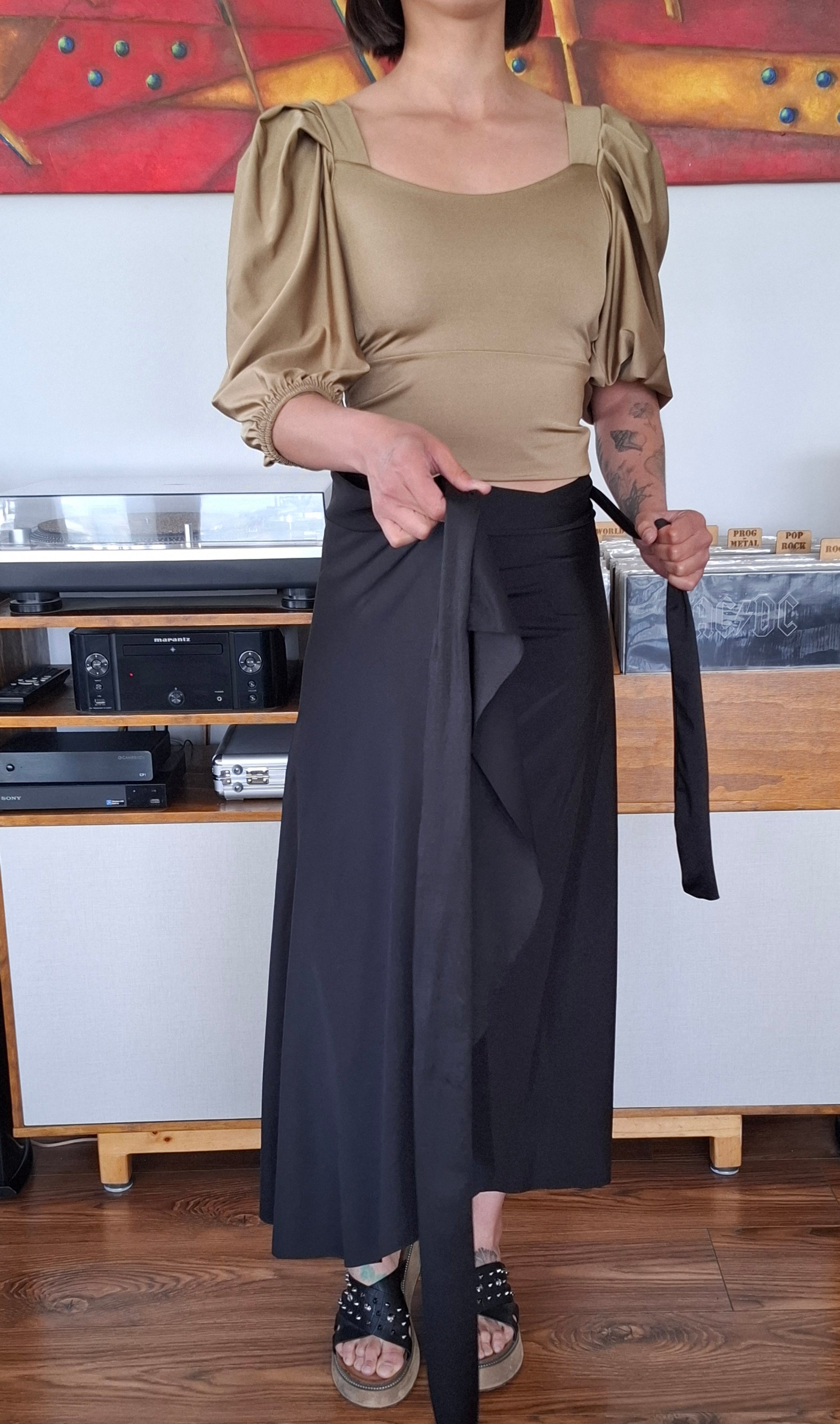Falda envolvente Tili confección Eni Villavicencio es un nuevo modelo para esta colección Primavera - Verano 2026, su diseño tipo pareo se adecua a todo tipo de cuerpo donde puede ser usada perfectamente en el embarazo , cómodas y versátiles para cualquier ocasión.