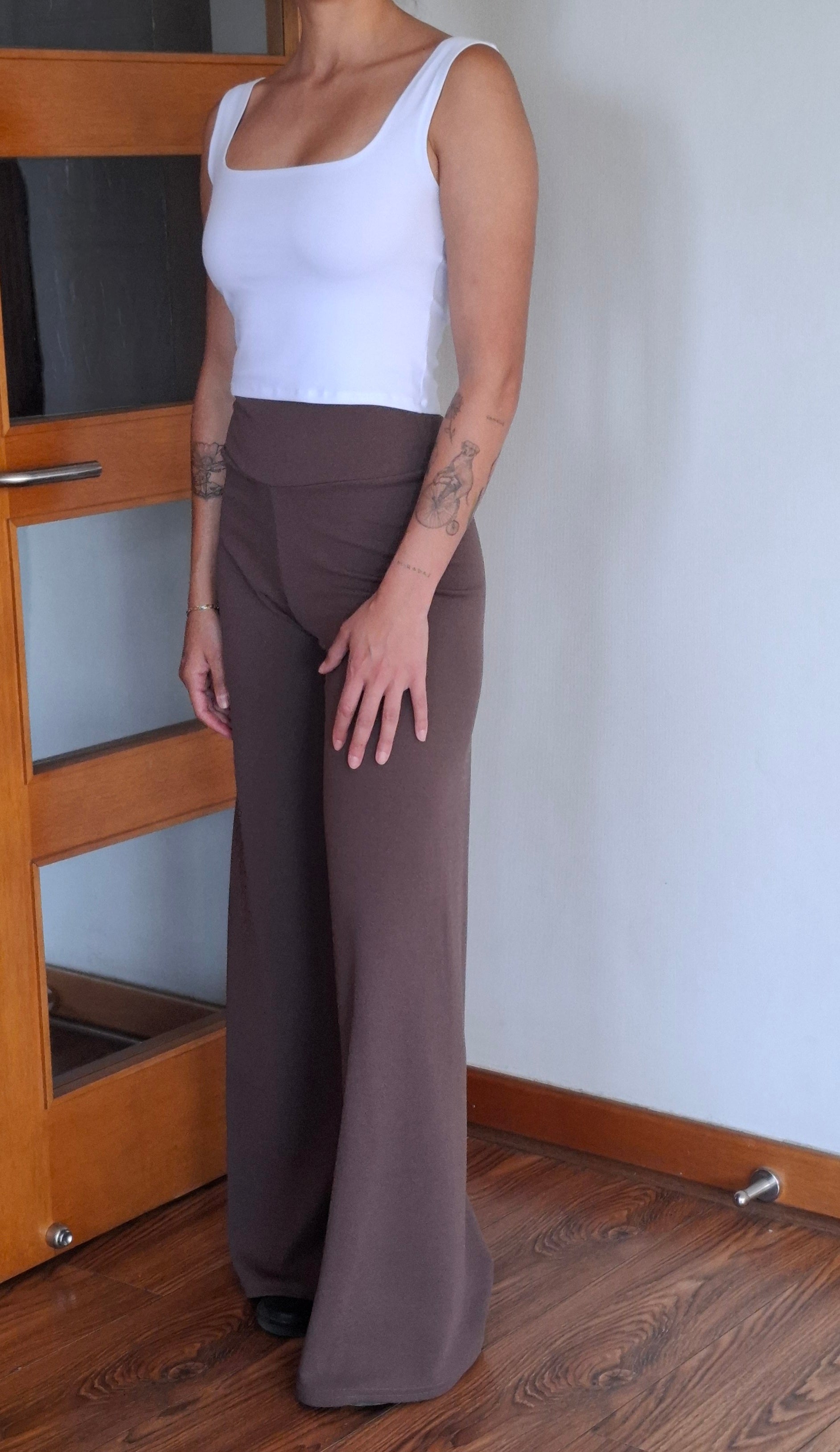 Tiro alto (no corta la cintura) y pretina ancha sin elástico recogido para que no marque ni apriete las zonas no deseadas. Pueden ser usados perfectamente en el embarazo por su corte alto.