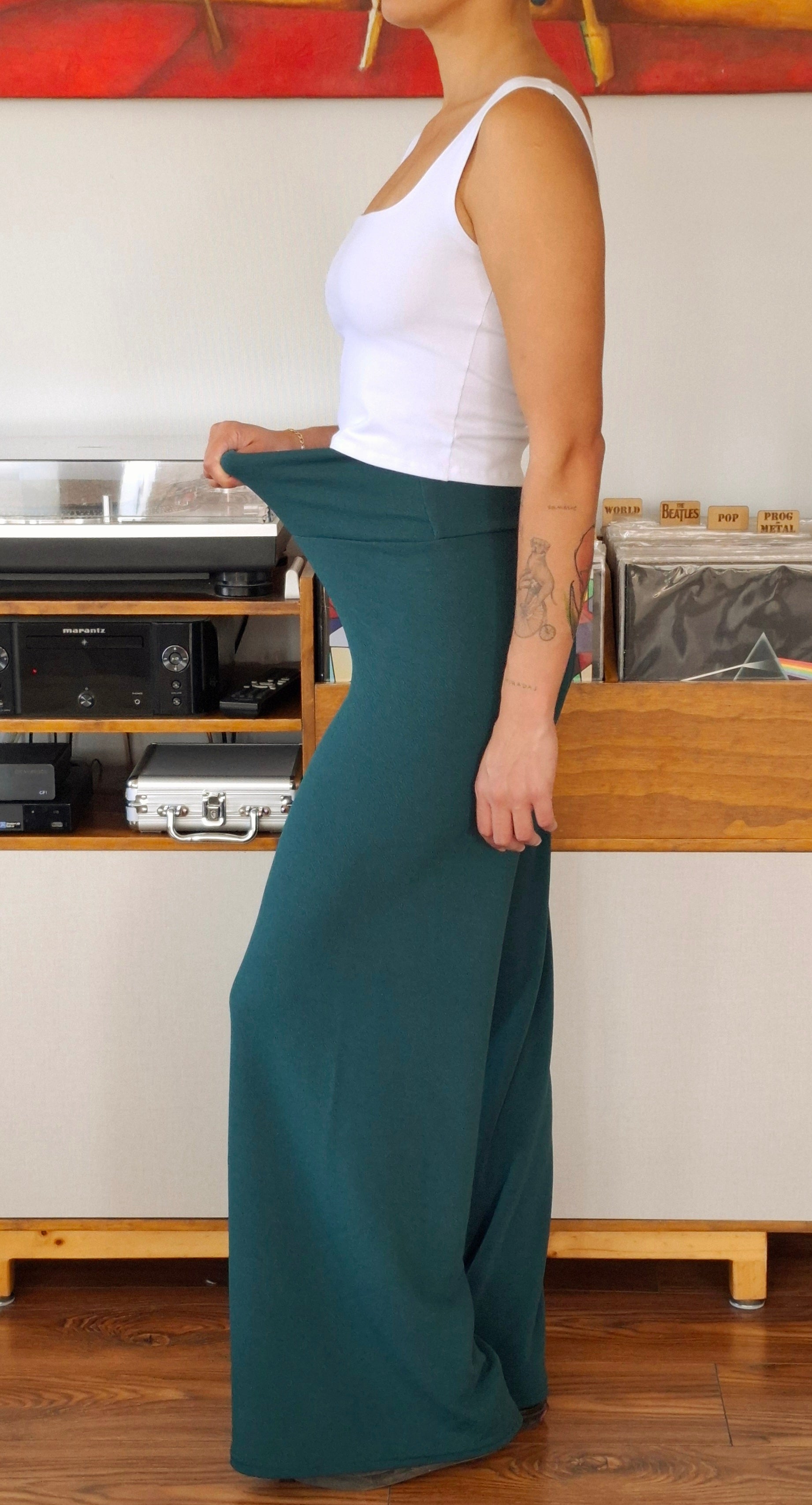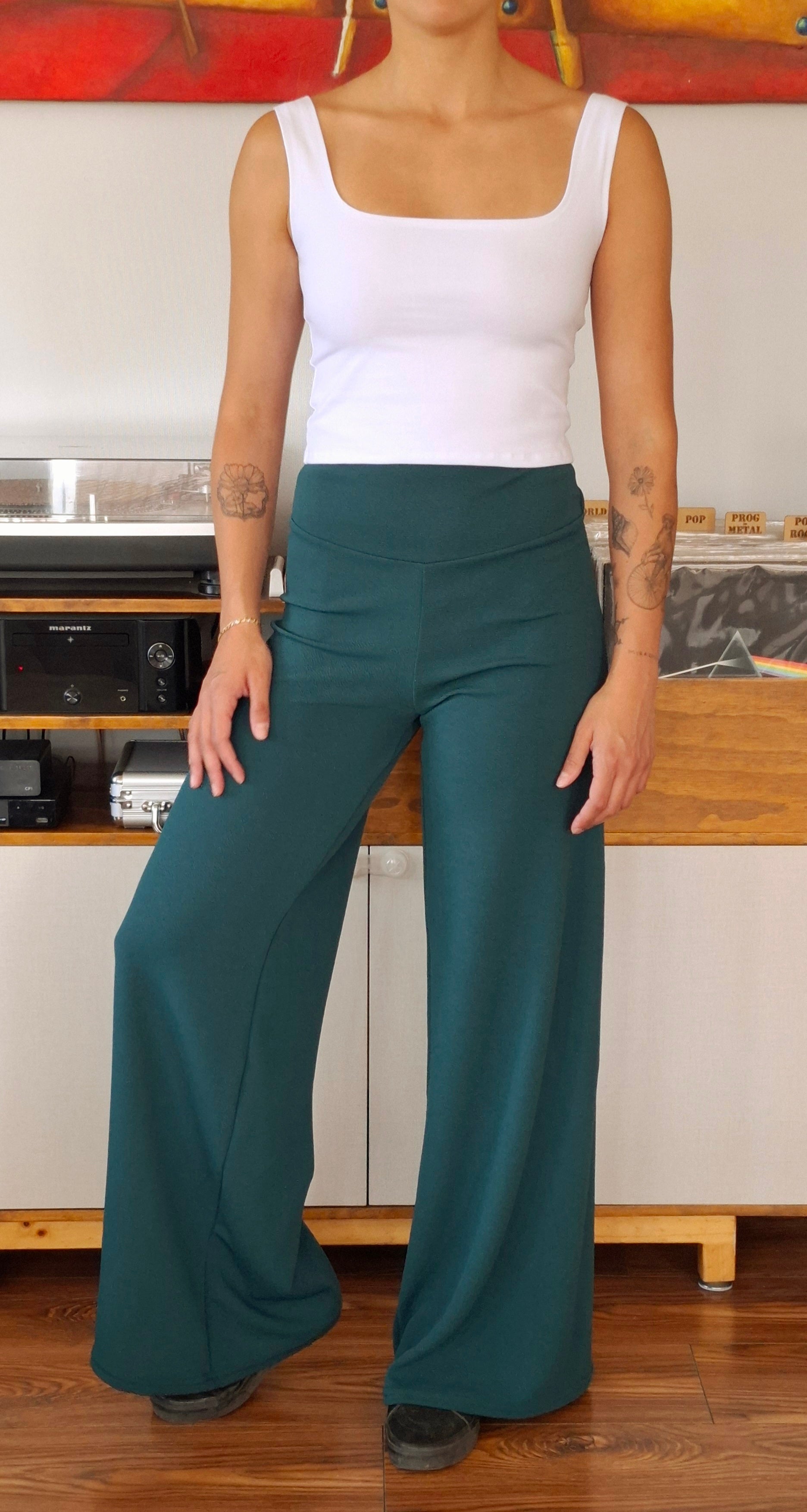 Tiro alto (no corta la cintura) y pretina ancha sin elástico recogido para que no marque ni apriete las zonas no deseadas. Pueden ser usados perfectamente en el embarazo por su corte alto.