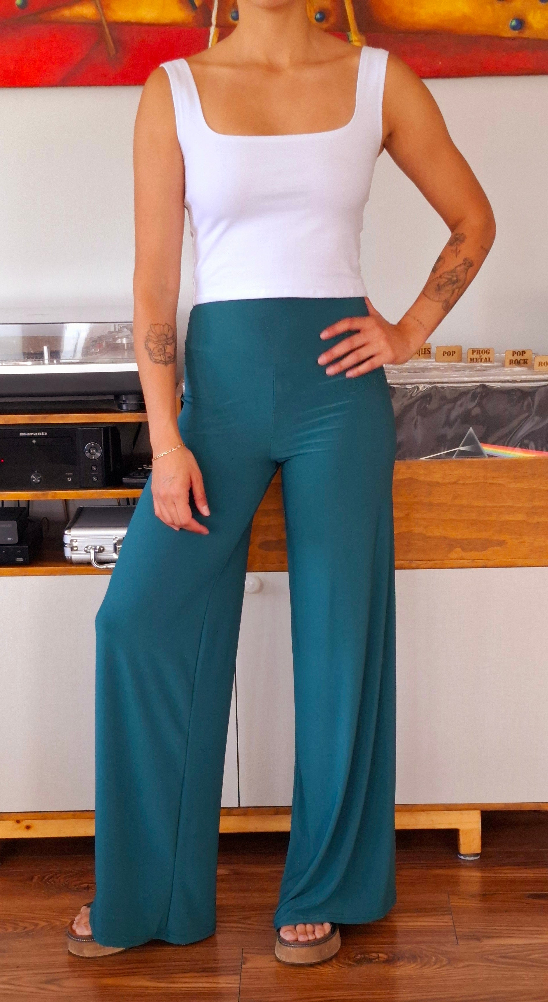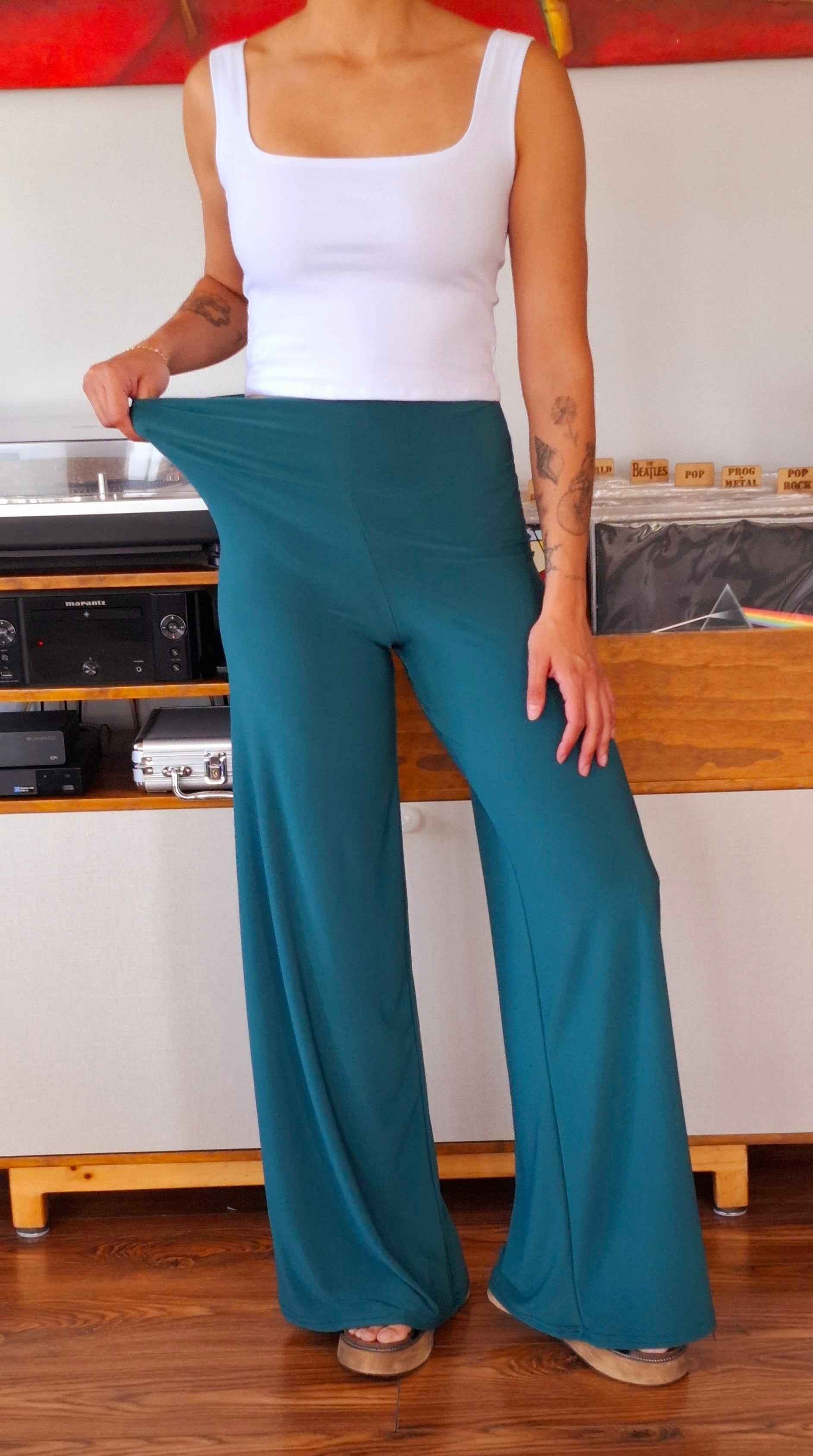 Tiro alto (no corta la cintura) y pretina ancha sin elástico recogido para que no marque ni apriete las zonas no deseadas. Pueden ser usados perfectamente en el embarazo por su corte alto.