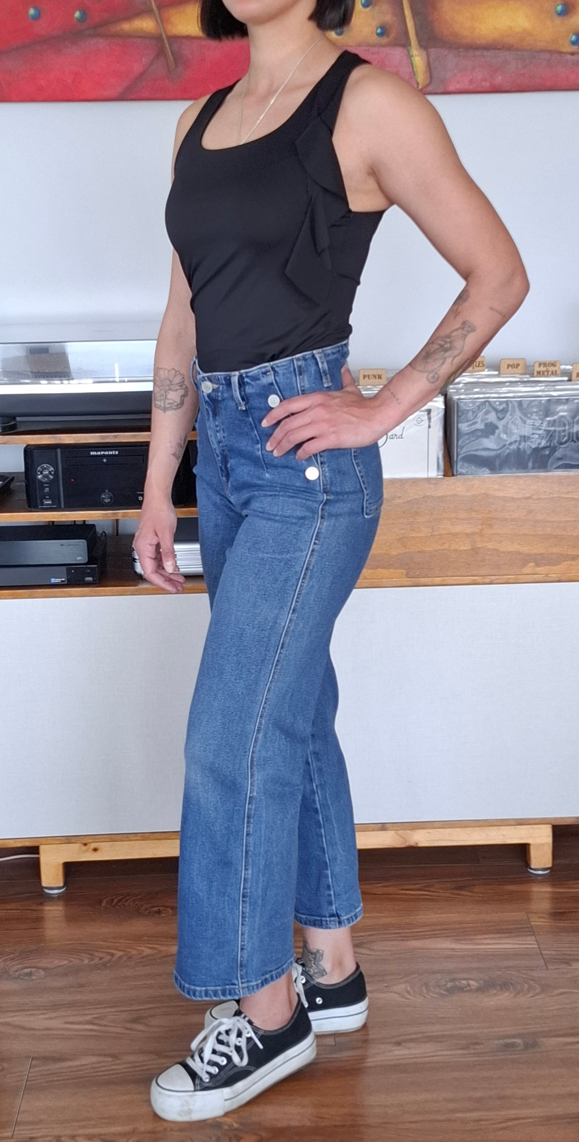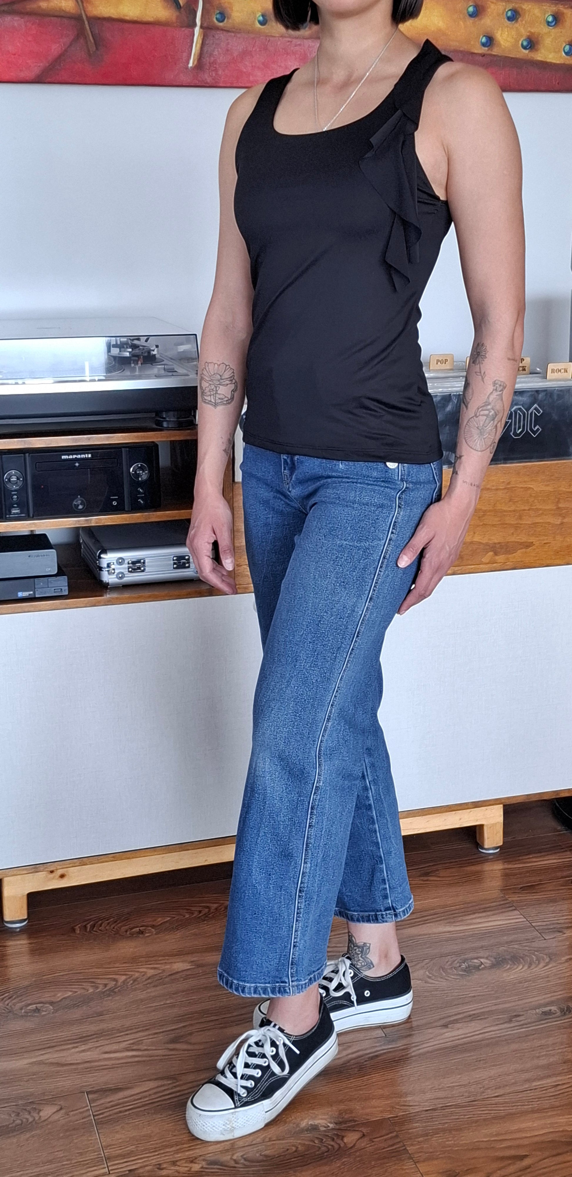 Polera Basic negra con detalle de lazo en su hombro confección Eni Villavicencio (Nueva colección Primavera Verano)