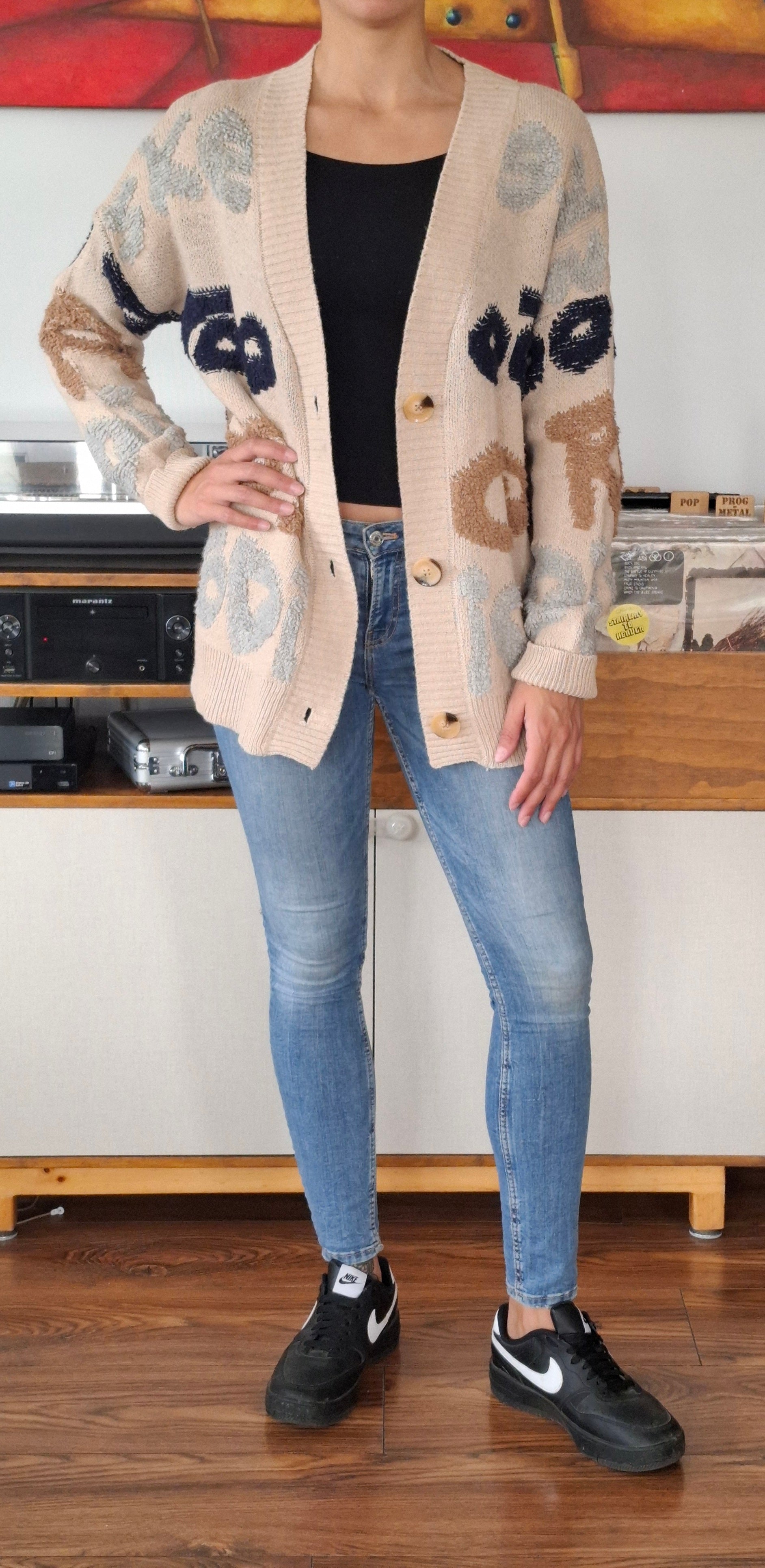 Tejido de lana color Beige con diseños.