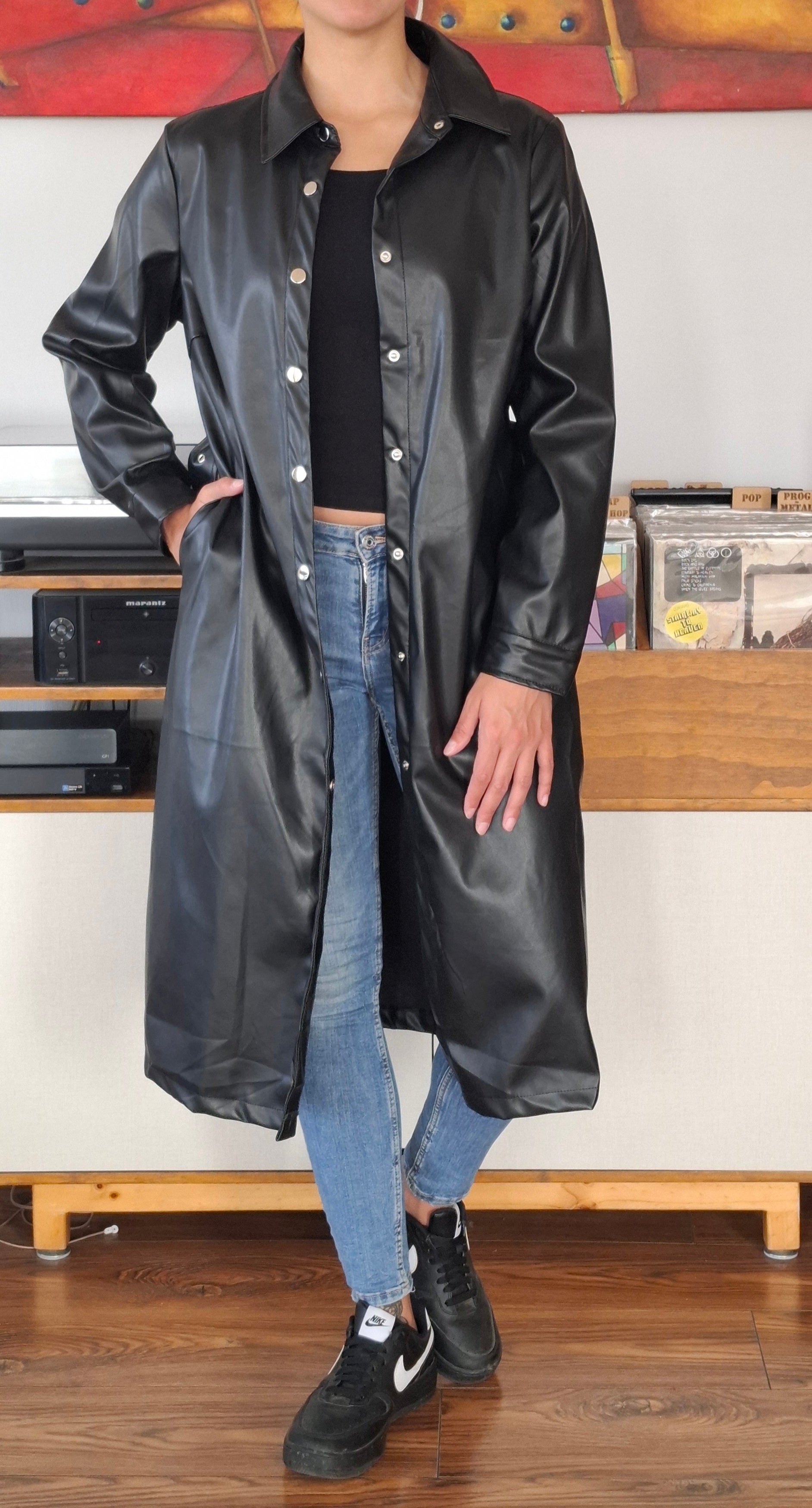 TRENCH ECOCUERO OPACO NEGRO
