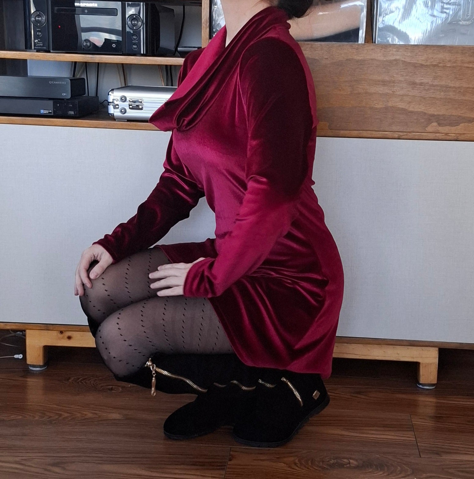 VESTIDO TERCIOPELO BURDEO CUELLO TORTUGA